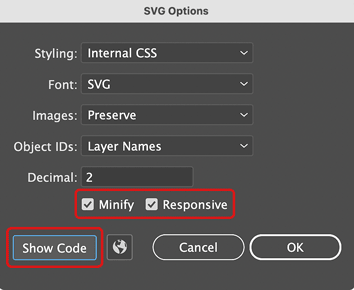 - The SVG Options dialog box opens.